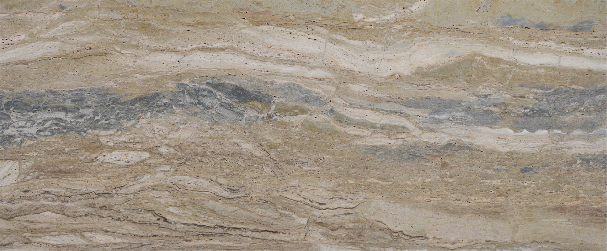 تراورتن Canyon Blue یک سنگ منحصربهفرد با الگوی مواج و لایههای افقی است که یادآور دیوارههای درههای طبیعی میباشد. این سنگ ترکیبی زیبا از رنگهای خنثی مانند بژ، کرم و خاکستری را با رگههای چشمگیر آبی-خاکستری و لمسهایی از سبز زیتونی به نمایش میگذارد. این پالت رنگی آرامشبخش و در عین حال پویا، آن را برای فضاهای داخلی و خارجی که به دنبال ظاهری طبیعی و خاص هستند، عالی میکند.
