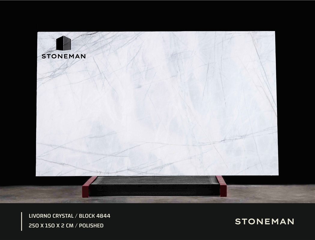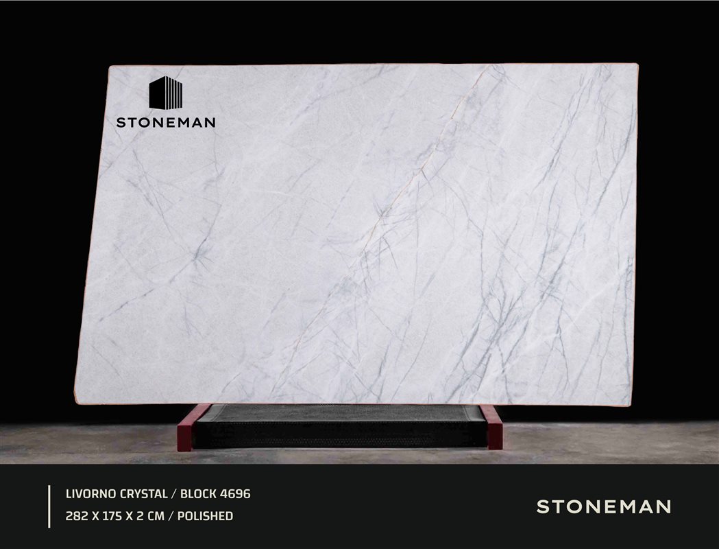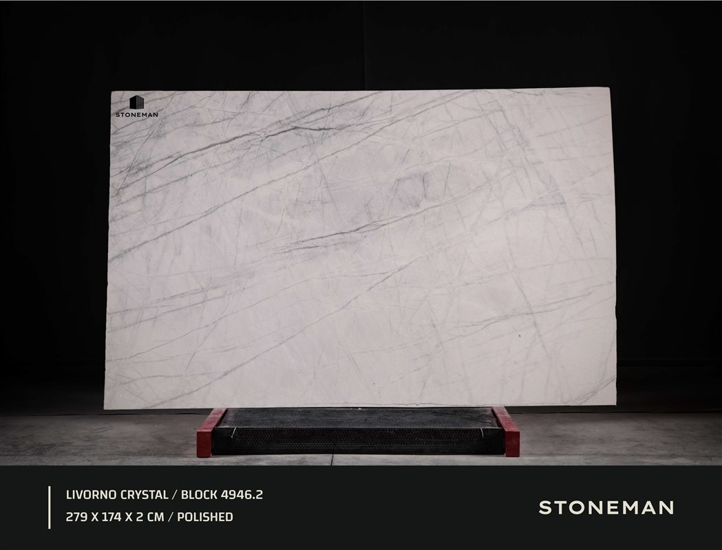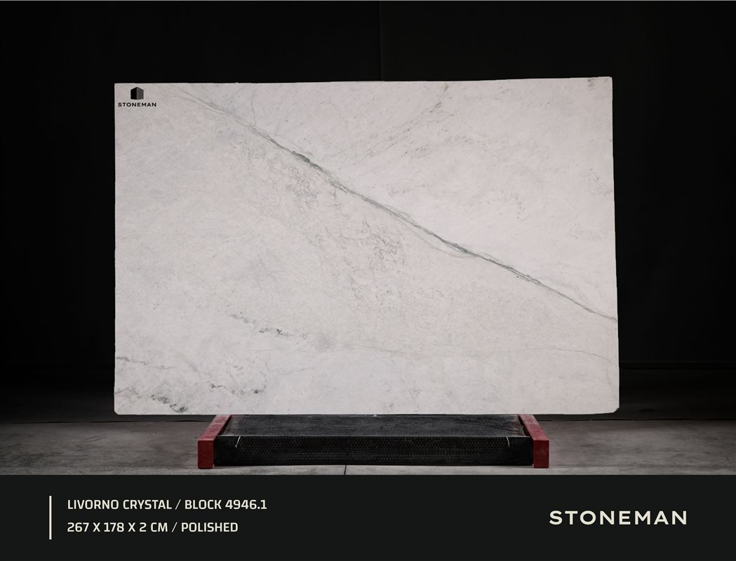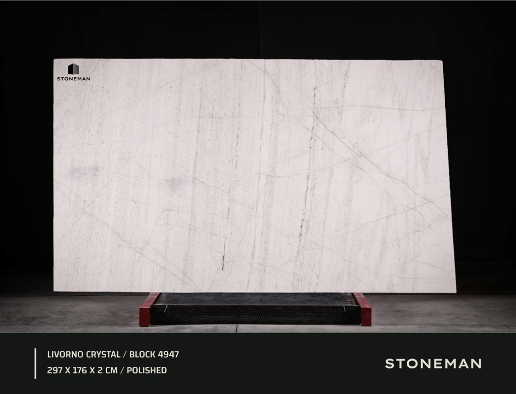 Камень Livorno Crystal (Ливорно Кристалл) предлагает классический и очень шикарный вид благодаря своему блестящему белому фону. Поверхность покрыта тонкой, художественной сеткой из узких прожилок темно-серого и черного цветов. Эти линейные и иногда пересекающиеся прожилки придают камню динамичный, но сбалансированный вид, делая его идеальным для современных и минималистичных пространств, стремящихся к элегантности.