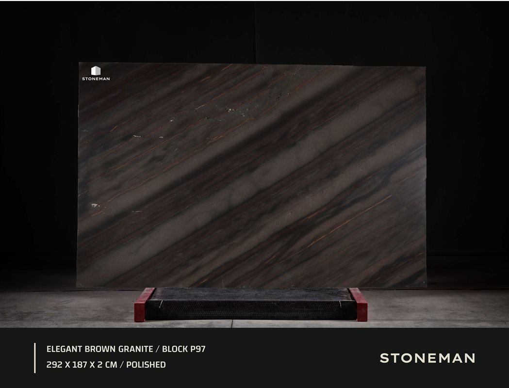 Гранит Elegant Brown предлагает теплый и изысканный вид благодаря своему линейному диагональному рисунку. Слои темно-коричневого, дымчато-серого и тонкие медные или красные прожилки создают спокойный, непрерывный поток. Этот камень напоминает текстуру ценных пород дерева и идеально подходит для создания уютных, но роскошных интерьеров, таких как библиотеки или классические кухни.