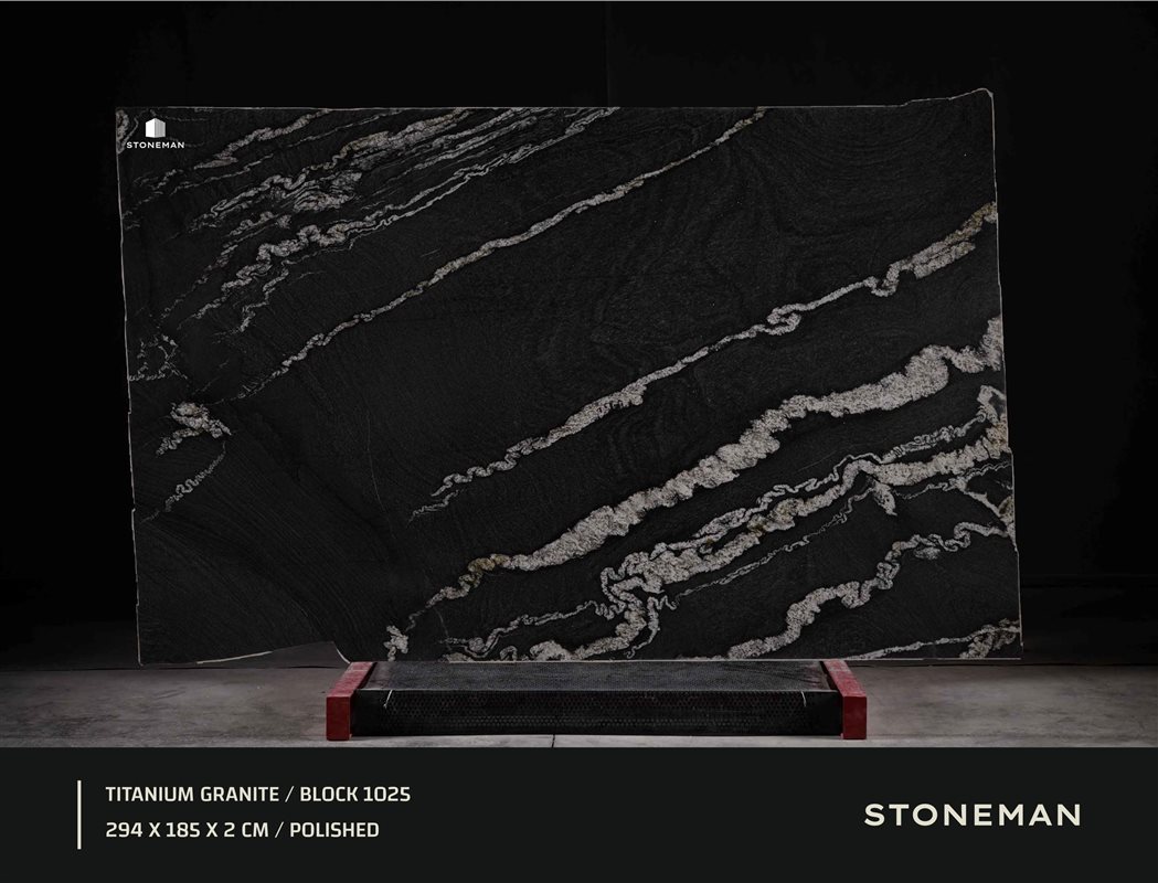 Гранит Titanium — это смелый выбор, отличающийся сильным контрастом и выразительными прожилками. Его глубокий, фактурный черный фон служит холстом для извилистых кристаллических прожилок белого, серебряного и едва уловимого золотого оттенков. Этот мощный узор привносит в любое пространство ощущение необузданной энергии и роскоши, идеально подходя для акцентных стен или кухонных "островов".