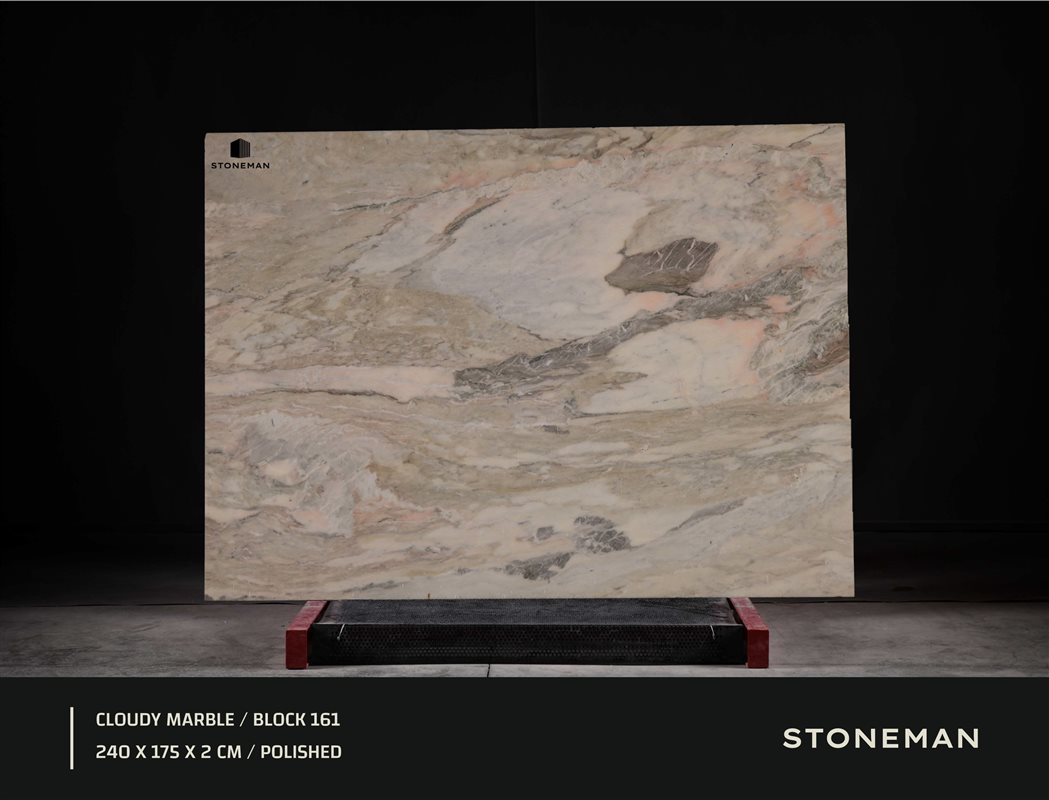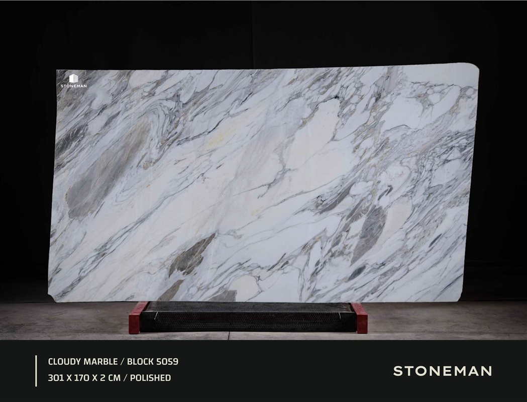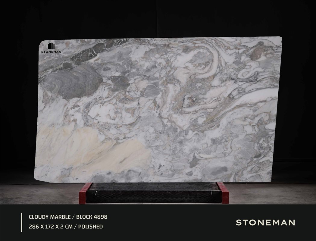 Мрамор Cloudy (Облачный) отличается своим мягким, облачным узором. Белый фон камня смешан с широкими, переплетенными пятнами и потоками светло-серого и бежевого цветов. Этот нежный и динамичный вид вызывает ощущение медленно движущихся облаков, идеально подходя для создания светлых, безмятежных пространств с уникальным характером.