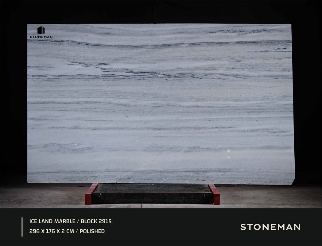 Мрамор Ice Land (Ледяная Земля) своей линейной и горизонтальной структурой напоминает слои льда в леднике. Светлый серовато-белый фон камня прорезан параллельными, тонкими прожилками более темного серого цвета. Этот упорядоченный и спокойный узор привносит в пространство ощущение неподвижности и природной чистоты, идеально подходя для современных и горизонтальных дизайнов.